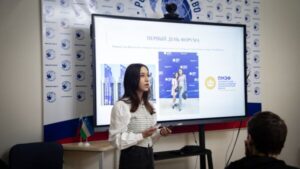 А вот еще одна участница из Узбекистана Нателла Никурадзе была уже в качестве спикера на том же Форуме молодых лидеров в Омске. Она сегодня студентка 5-го курса филиала ВГИКа в Ташкенте и будущий специалист по направлению продюсер кино и телевидения.